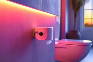 Intégrer un porte-papier toilette coloré dans votre décoration de salle de bain